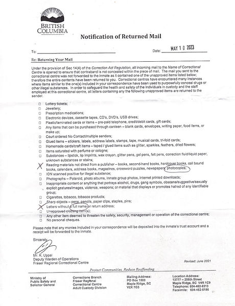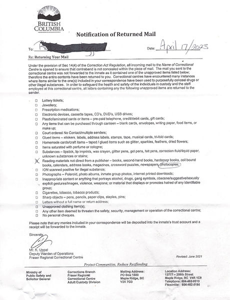 These forms represent a concerning trend in prisons, creating even more barriers to people inside accessing information and resources. Please see below for some examples of the forms we have received with returned letters: